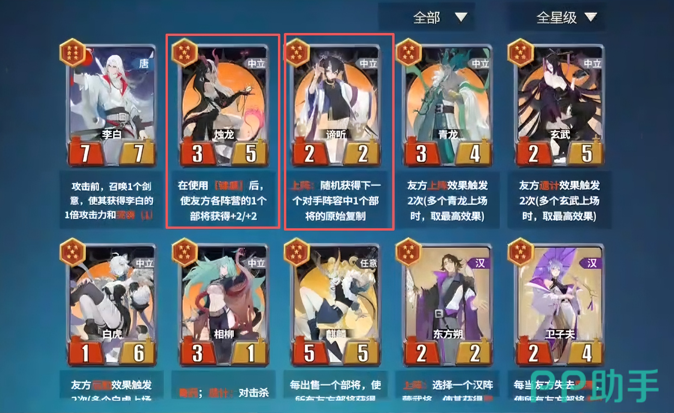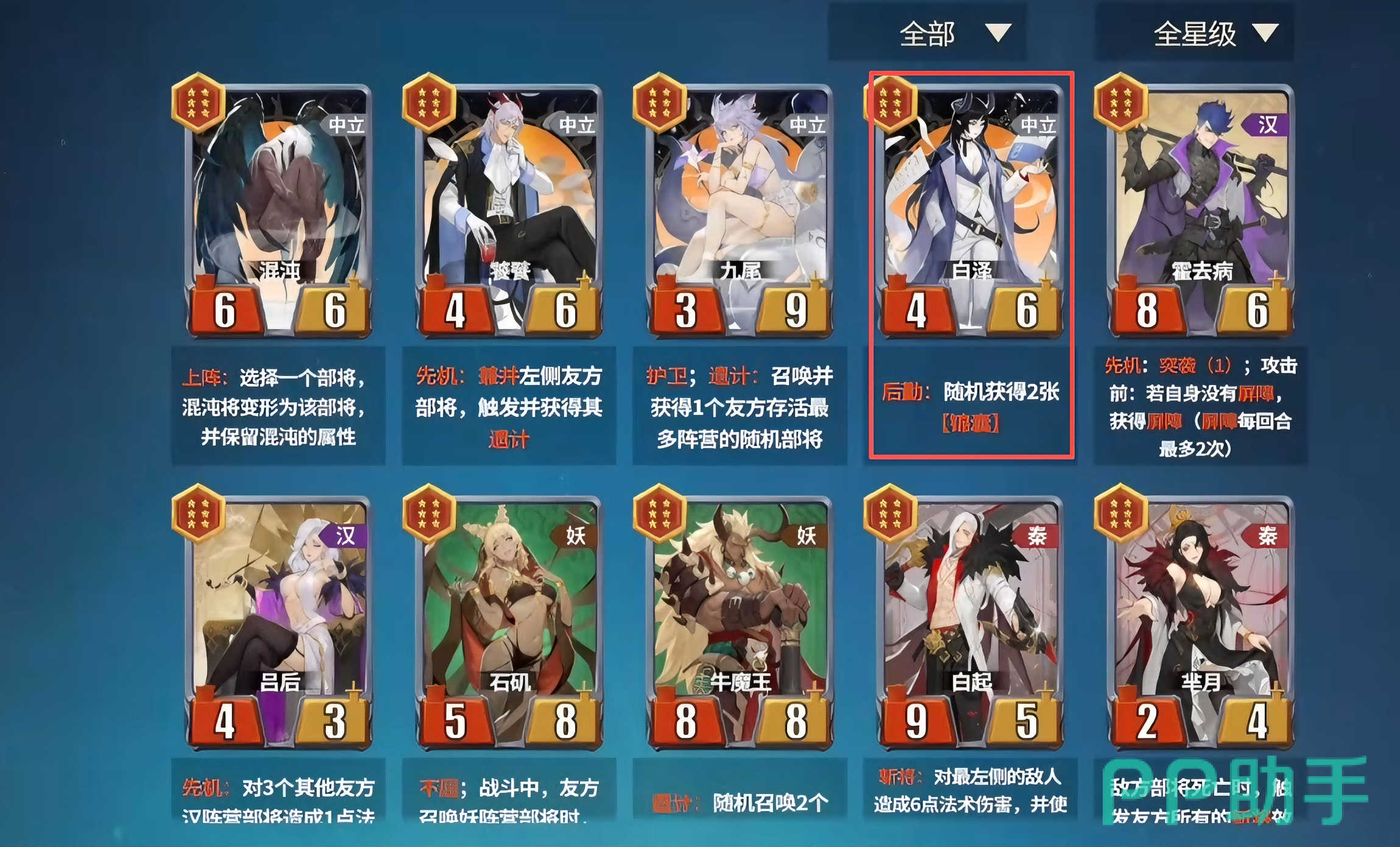 锦囊体系具有明显的时间依赖性,属于典型的“越战越强”流派。因此,前期资源调度重心应落在锦囊生成效率上。白泽与白虎是该体系的启动核心:二者均具备稳定产出锦囊卡的能力。建议开局即完成获取,并将其置于后排安全位置,避免被敌方快速清除。其中,金色白虎可将后勤效率提升至三倍,单回合最高生成12张锦囊卡,大幅缩短buff叠加周期。