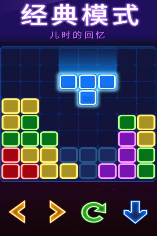 游戏里,经典玩法焕新回归,玩家借助虚拟按键灵活操控方块的形态变换与下落轨迹,每成功消除更多行数,就能斩获更高分数,畅享消除快感。此外,还有别出心裁的拖拽玩法,屏幕下方备有三个灵动方块,只需巧妙地将它们拖入方格矩阵,只要有一行或一列被完全填满,就能触发消除特效。