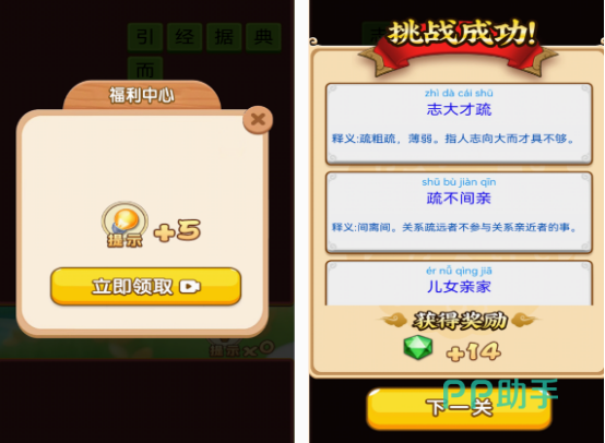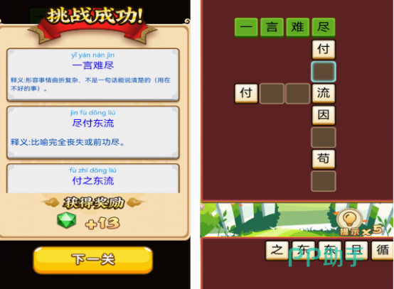 此休闲游戏不仅是全部中文版本的,满足大家的需求,也能感受我国古老的文化所具备的独特魅力,也是能锻炼思维能力和脑筋的,文字佳品游戏。除了大家熟悉的成语接龙玩法,为了考验玩家在这方面的实力,还有成语消消乐,看图猜成语等诸多的玩法,你可在玩的过程中,根据自己的需求及时选择。每次闯关的时候,都有提示的文字。