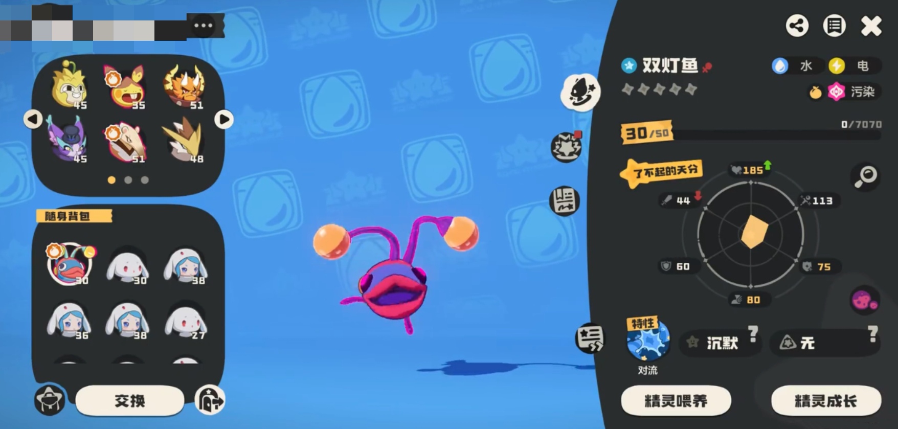 进入游戏中后期,随着精灵图鉴逐步扩充,玩家可依据不同环境场景切换更专业的位移单位。水域通行方面,双灯鱼、冰钻布鲁斯及深海鲸三者均具备稳定水下机动性,其中深海鲸载具感更强,适合长距离跨水区航行;陆地场景下,大头骨龙凭借低模型遮挡、高奔跑帧率与可靠跳跃响应,成为兼顾视野与效率的理想选择;空中维度则推荐捕尘长绒,其飞行高度充足、加速响应快,能有效绕开地面障碍与密集战斗区域。