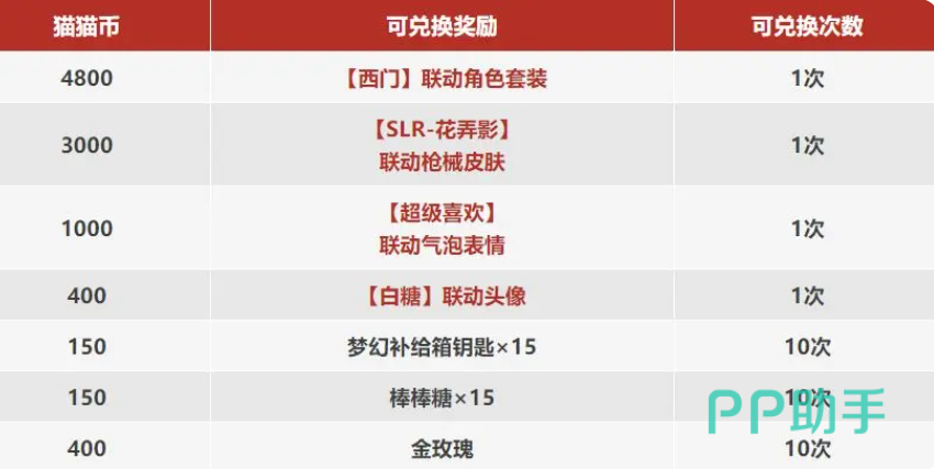 除常规兑换外,活动还设有“春节庆典口令兑换”专区。2月4日至3月1日期间,系统将新增京剧猫专属口令码,玩家输入后可直接领取对应奖励。其中,棒棒糖、金玫瑰等道具所需猫猫币数量详见官方兑换表(见下图)。
