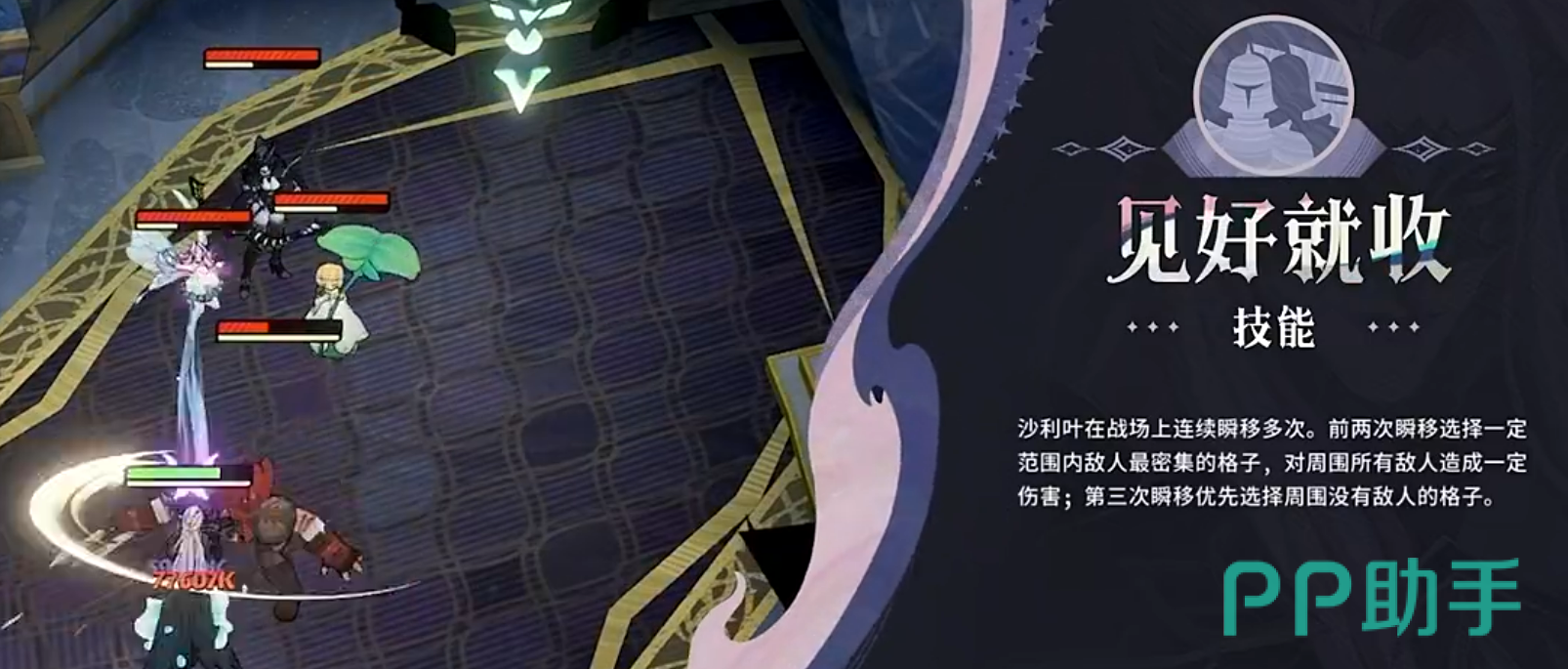 他的另一个主动技能“见好就收”展现了极强的战场机动性。该技能允许沙利叶进行多次瞬移,在前两次跳跃中优先选择敌方密集区域进行打击,后续位移则转向空旷地带,避免陷入包围。这种智能路径规划不仅能帮助他规避关键控制与集火,还能灵活切入后排,针对脆皮输出单位实施精准清除,极大提升了生存与输出效率。