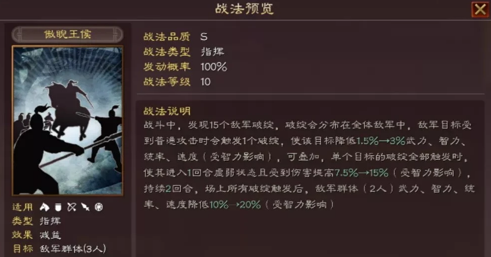 第三种思路为快攻普攻流,主打高频压制与瞬时爆发。SP马超采用【百骑劫营】+【速成】组合,郭嘉继续使用【铁骑驱驰】+【备用格】,第三位武将建议选用虎豹骑兵种,并配置【锋矢阵】。配合【西凉铁骑】提升连击概率,使普攻频繁触发战法效果,快速瓦解敌方低坦度阵容。该体系对郭嘉的先手与免控依赖较高,能有效规避SP马超被缴械或沉默导致的输出中断问题。