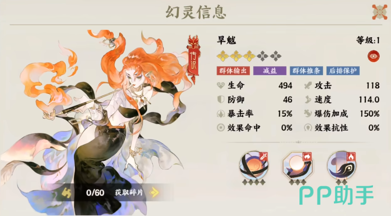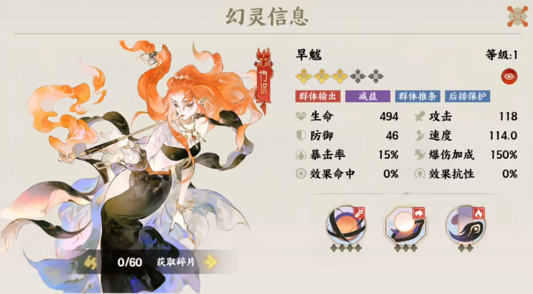 旱魃是游戏里的一个传奇角色,想要使用这个角色,玩家首先需要去收集足够多的碎片,集齐60个碎片之后才能解锁这个角色,作为一个群体输出英雄,玩家可操控角色,利用技能不断去攻击对手,通过猛烈的输出,也可以保护后排里的其他成员,缺点就是这个角色的防御值会比较低,需要选择一个强力的角色作为整个队伍的保护,在前排抵抗伤害。