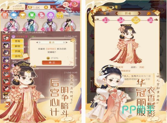 此休闲游戏不仅是融入了古风设计,更是可在里面谈恋爱的,除了收录了美男三千,女性角色在玩的时候,可享受一场宫廷大戏琳琅满目的漂亮服饰,通过自由换装的方式,帮助你成为漂亮的女性,还能与游戏中的各种美男子享受浪漫的恋爱。想要成为游戏中拥有权力的女皇,需要具有一定的智慧,发挥自己的能力。