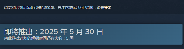 游戏在2025年的5月30号就会上线,距离现在大概会有一个多月,如果大家喜欢这款游戏,那就不要错过游戏上线的时间。