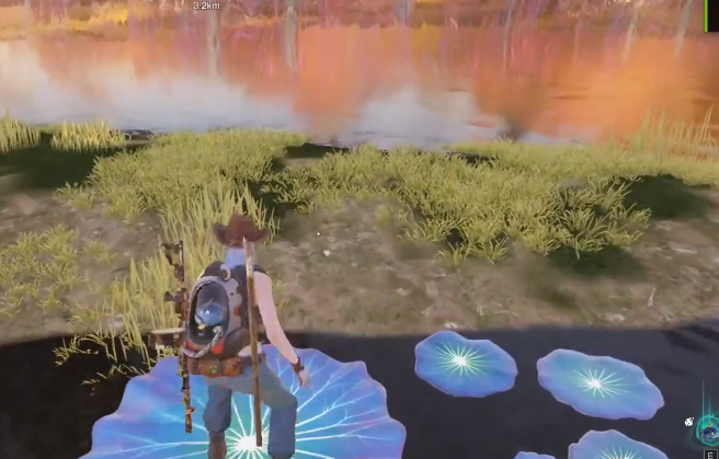 接着可以传送到太阳农场,在太阳农场左边的山上,可以看到下一个异常点,进入到这个异常点之后,玩家就可以获取第三个宝箱,然后沿着这个宝箱,可以继续往小地图的河流交汇处行走,在这里可以看到三个巨大的荷叶,玩家需要按照要求跳上荷叶,然后就能发现第4个宝箱,顺着这个宝箱,继续向黑心内湾传送塔前进,到达这里之后可以朝左上角行走,左上角能看到一条比较狭窄的小路,沿着这个小路走到前就能看到最后一个宝箱了。
