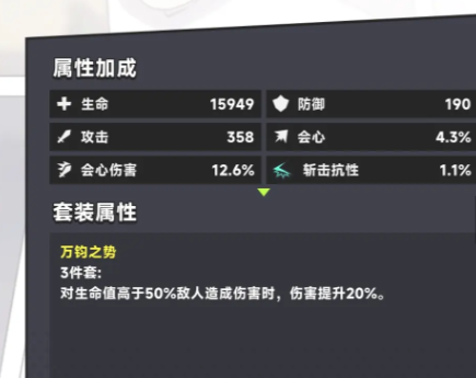 不同角色的技能在使用过程中都会有所区别。在面对困难的模式时,还需要注重于装备的选择。例如可以选择万钧之势对于生命值高于50%的敌人可以造成提升20%的伤害,在拥有这一套装备之后,那在困难的模式中就有比较好的效果。