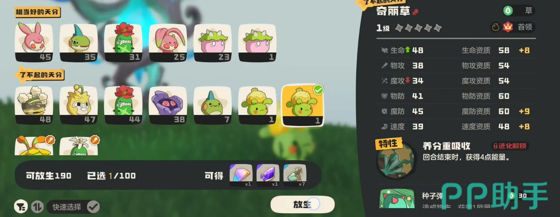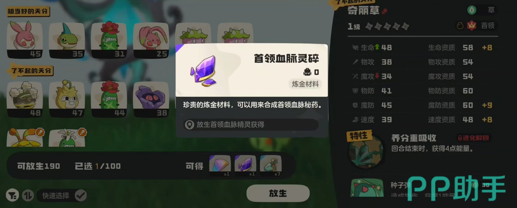 因此,玩家们要想获得更多的首领血脉秘药,最好的方法就是多去挑战首领精灵,拿到更多能孵化出首领精灵的宠物蛋,这样自己就拥有了更多能放生的首领精灵来刷取首领血脉灵碎。当然,在放生首领精灵前各位还请先将自己需要的首领精灵保留下来,别一起放生了。