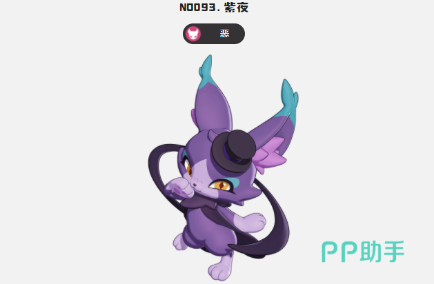 紫夜是一只恶属性的精灵,外形如同一只灵动的紫色小猫,头顶佩戴着一顶黑色礼帽,整体造型神秘而独特。它由初始形态“小夜”进化而来,小夜本身也是一只猫型精灵,但形象更为稚嫩可爱,脖子周围有花纹装饰,尾巴呈黑色箭头状。当小夜等级达到26级时,即可进化为紫夜。无论是精灵蛋还是成熟体,其外观主色调均为暗紫色。紫夜在游戏中拥有出色的移动速度和物理攻击力,但魔法防御能力较弱。此外,该精灵具备一项特殊机制:首次受到致命伤害时可免疫死亡,为战斗提供额外容错。