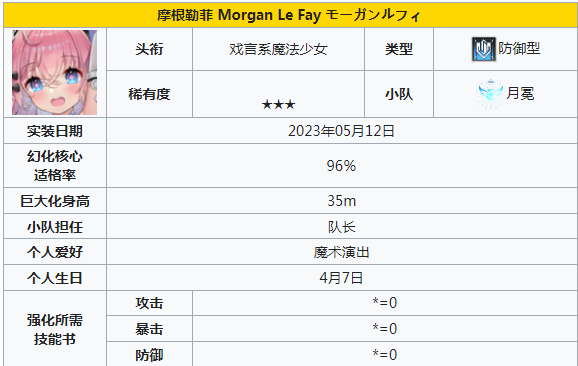 摩根勒菲:会拥有三种不一样的形态,开始主要是以输出为主,可以秒杀攻击型的敌人。到了后期就可以克制防御性的敌人,能够有效实现群秒,这就是阵容中的核心角色。