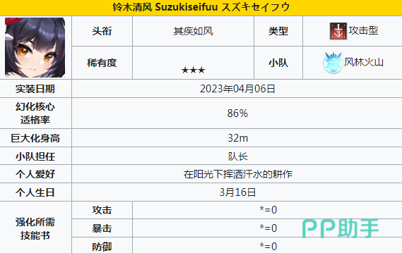 铃木清风:在普通攻击之后,就可以针对敌方的目标造成对应比例的伤害,在战斗开始时同样也可以提升输出的能力,可以获得永久的自身机动力。