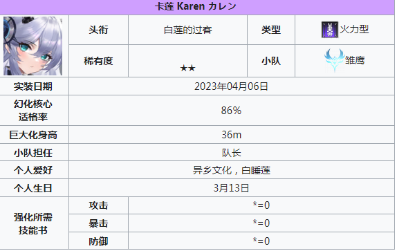 卡莲:是一个输出型的角色,面板技能相对比较高,六级技能可以直接跳过蓄能启用,针对敌方防御单位可以造成比较可怕的伤害。