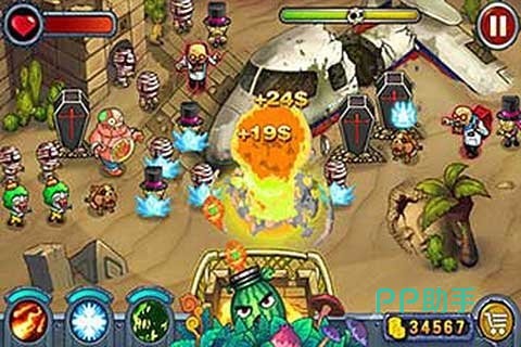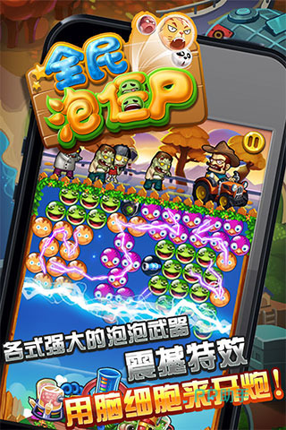 僵尸在追击,需要借助泡泡在阻挡僵尸,这里有各种干扰,需要将颜色相同的泡泡收集起来,收集到一定数量的泡泡就可以发射强大的武器,消灭那些僵尸,还需要在游戏中将武器做到升级,需要在规定的时间内摆脱这些追击的僵尸,泡泡有时会突然变色,要随时调整这些泡泡,里面的泡泡还有神秘的武器,获得这些武器会让游戏变得简单。