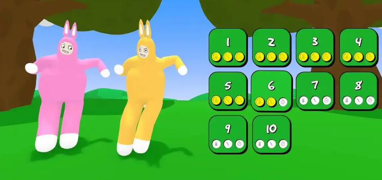 疯狂兔子人是款双人合作版本的互动闯关主题手游,两个玩家会成为滑稽兔子人在关卡内合作挑战,需要互相协作才足以破解各种机关尽情挑战,搞笑滑稽的兔子人造型也会呈现欢乐的氛围,地图上还会刷新许多道具让兔子人轻松冒险,三维的背景呈现和灵活操作性质都是兔子人手游标配。