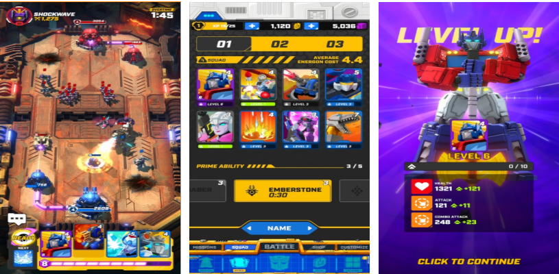 这是款经过变形金刚授权的俯视角塔防策略类游戏,你会进入变形金刚的星球建造基地、探索世界,同时要小心狂派机器人时不时的偷袭,机械感十足的背景和写实画面令人着迷,每一位变形金刚都具备别样的变身设定,夸张的特效展现与金属音效带来视听震撼,放置自动防御炮台对抗敌人的设定也很简单。