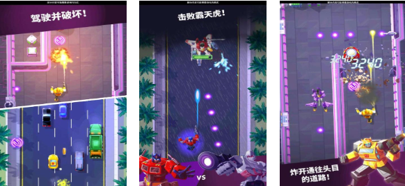 这是款以大黄蜂为主角的机械风格跑酷游戏,使用了上帝视角和科幻背景呈现,跑酷战斗过程代入感拉满也呈现出华丽特效,路面上的众多障碍和敌人可尽情摧毁顺利奔跑,红蜘蛛与路障等霸天虎BOSS会与你激战,积攒能量甚至能化身载具提高跑酷的速度,大黄蜂的粉丝快试试这款科幻跑酷类佳作吧。