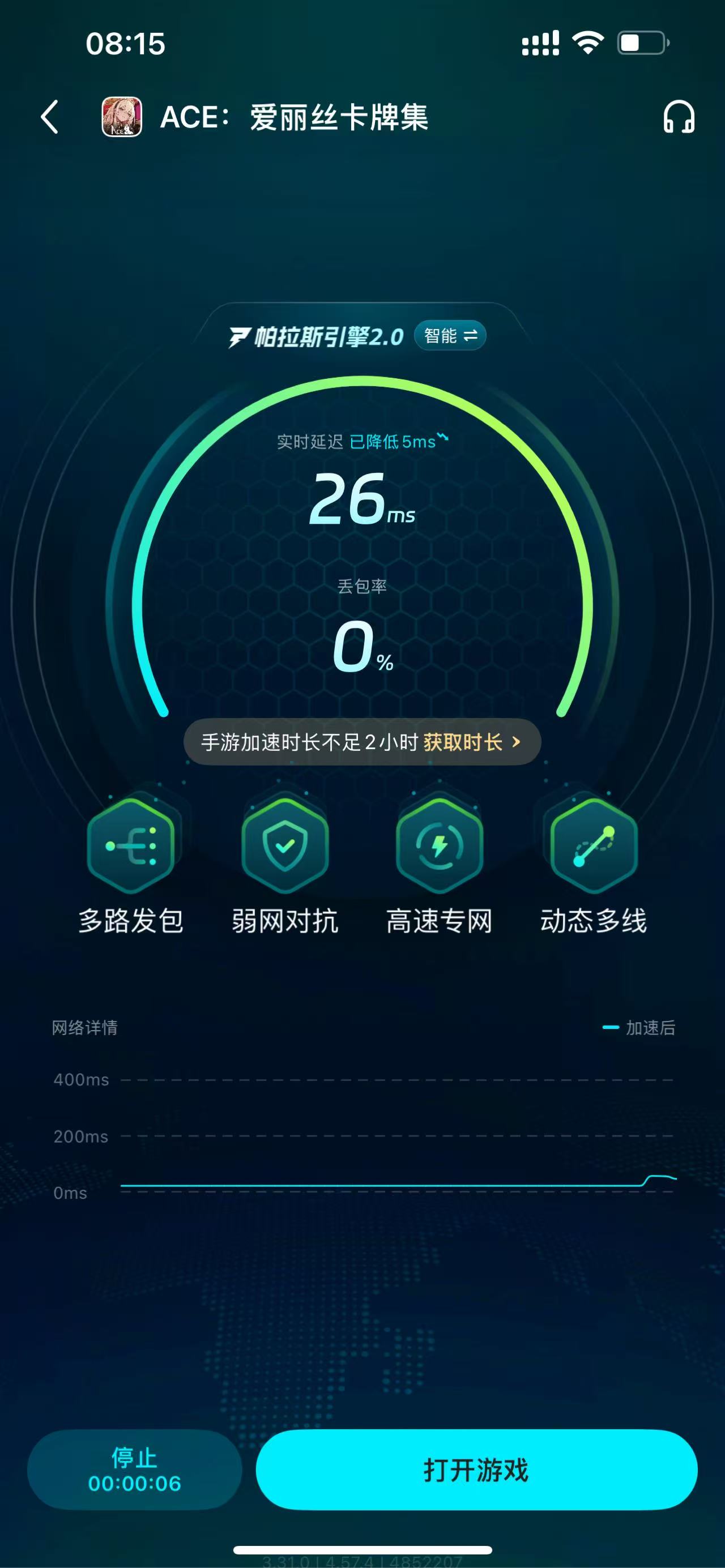 闪退或者卡顿都是因为网络不稳定引起的,所以大家运行期可以用上biubiu,加速后即可避免网络波动太大,可以安心打完一整把卡牌对局。若是大家想免费加速的话,则可通过观看领取免费加速时长,这样即可没有负担地开启加速!想要加载精美爱丽丝梦游仙境主题的画面,大家就要用上加速器,就能通过高速网络,渲染出每一帧令人怦然心动的画面。
