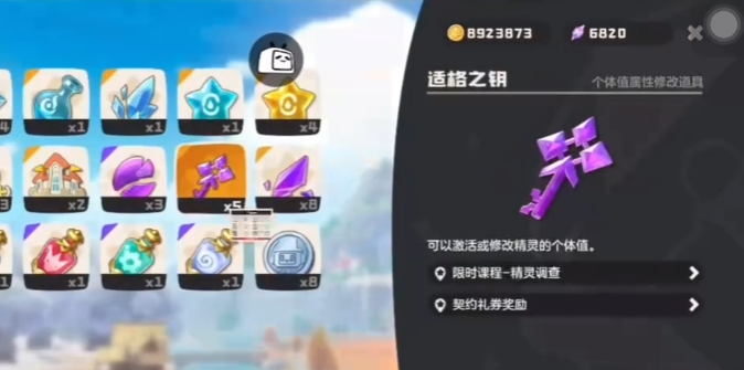 洛克王国世界手游中适格之钥可以通过购买精灵培养资源包来获取,在商店中也可以使用游戏货币来购买,除了这两种方式之外,还可以通过战场对战来获取,根据不同的排名奖励来获取适格之匙,适格之匙的用处主要用来修改精灵的个体数值,通过修改可以提升精灵的个体实力,可以将普通的精灵解锁升级为更高级的天分。