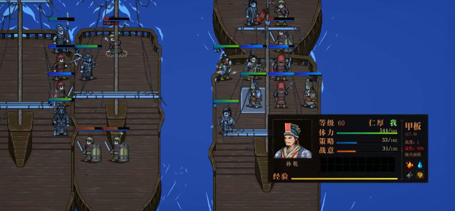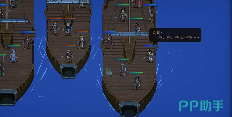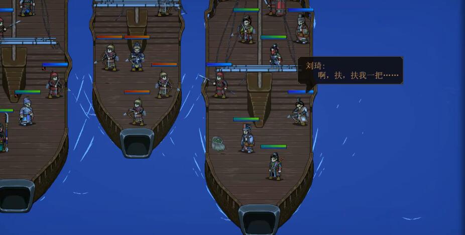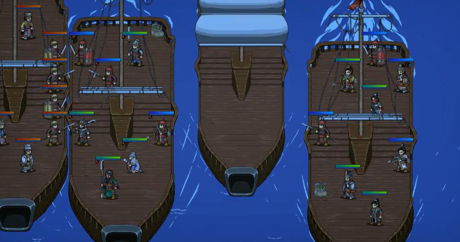 前期(1-4回合)集中清理左侧船只利用张飞地裂击制造控制。中期(5-8回合)南岸出现新船只,派遣赵云(转职轻骑兵)快速堵住位置。若甘宁令牌不足,可激活隐藏事件临时获得援军。终局阶段(9-12回合)需收缩防线至刘备撤离点,保留关羽的爆发技能状态用于最终BOSS的护甲破除。当刘备血量低于30%时,触发机制全队攻击+25%但无法恢复状态。此时应放弃上船,回头防守。由简雍释放防御抵挡箭雨齐射。若达成零损战船可解锁水师都督成就。