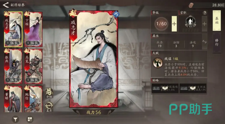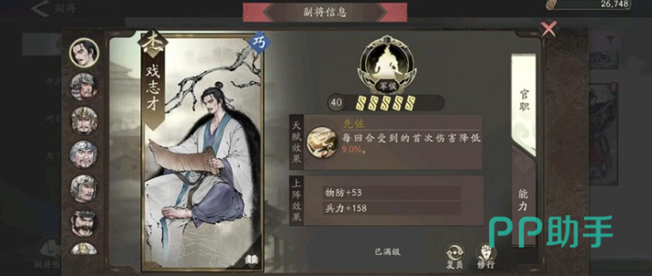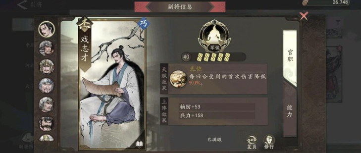 总体来看,戏志才虽非前期必养核心,但其中期战力成长迅速,战法等级达到7级后即可展现强劲实力。无需急于升星,合理利用其机制便能在中后期作为副将稳定输出,助力玩家应对高强度对局。掌握其操作精髓后,戏志才将成为扭转战局的关键存在。