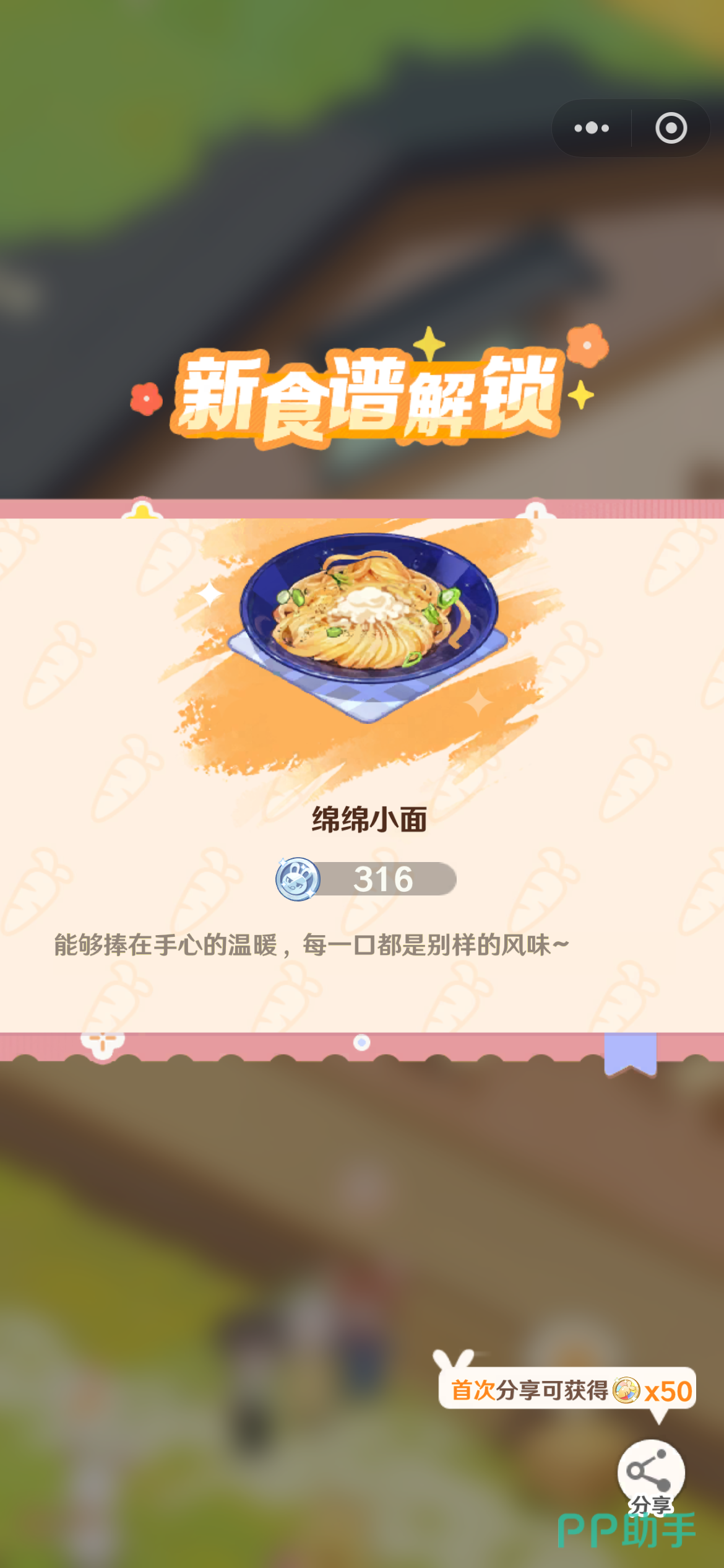 绵绵小面作为一款深受喜爱的面食类料理,源自一位新顾客的独特需求。研发此菜谱需准备料理锅与奶品精制机各一台,同时环境评分也必须达标——这是不可或缺的关键条件。若当前环境评分不足,可前往尾尾木作中心,通过三消玩法合成制作小店地毯所需的材料,进而改善店内氛围。在满足全部前置条件后,便可启动食谱研发流程:首先选择一份面条作为主料,接着按序倒入一瓶清水,再加入一份奶油,最后再次注入一瓶清水并充分搅拌即可完成。每次转动指针时,玩家都应提前预判落点位置,确保指针能稳定停靠在正确的原料区域。成功制作绵绵小面后,店铺经营评价将直接提升48分。