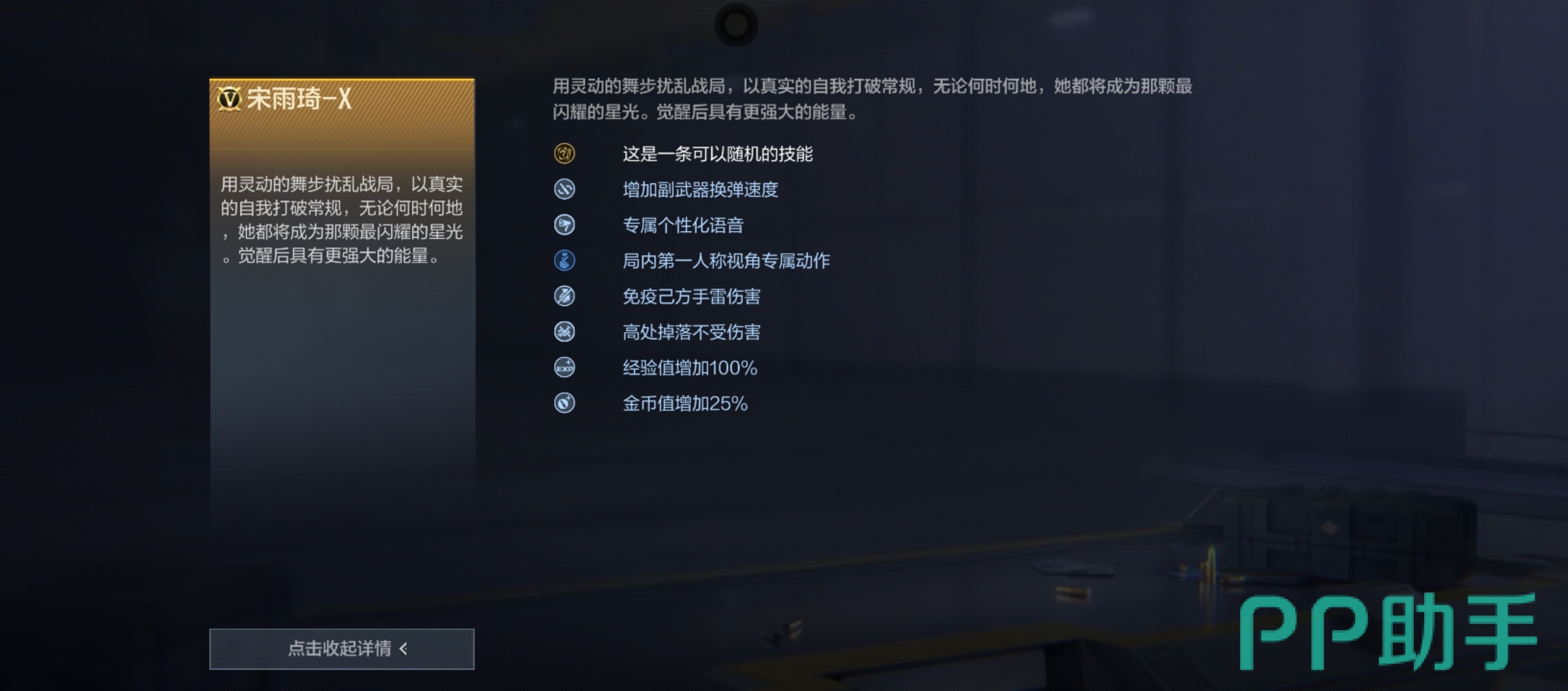 值得一提的是,该角色为非英雄级属性,所有玩家均可通过免费途径获取。只要完成活动任务,在活动界面直接领取即可,无需额外付费。此外,随着角色等级提升,还可激活“防闪”技能,进阶为宋雨琦X形态。升级后的角色不仅外形更具辨识度,实战能力也显著增强,兼具收藏价值与战斗实用性。