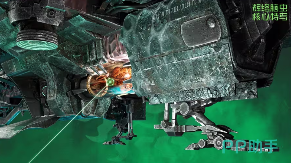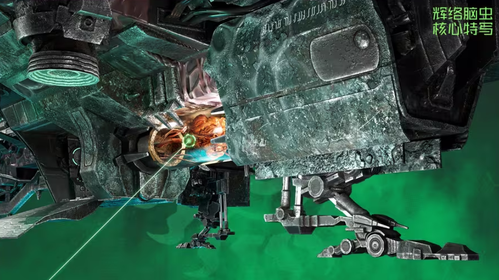 底部配置大推力矢量推进阵列,赋予其卓越的垂直轴向加速度与短距跃升能力,可在复杂天体引力场中快速调整姿态。舰体底部搭载脑虫核心生物计算单元,通过释放定向生物电波扫描地表及亚地层目标,实时回传坐标数据至火控主机,实现对掩体后目标的弹道动态修正与精准打击。
