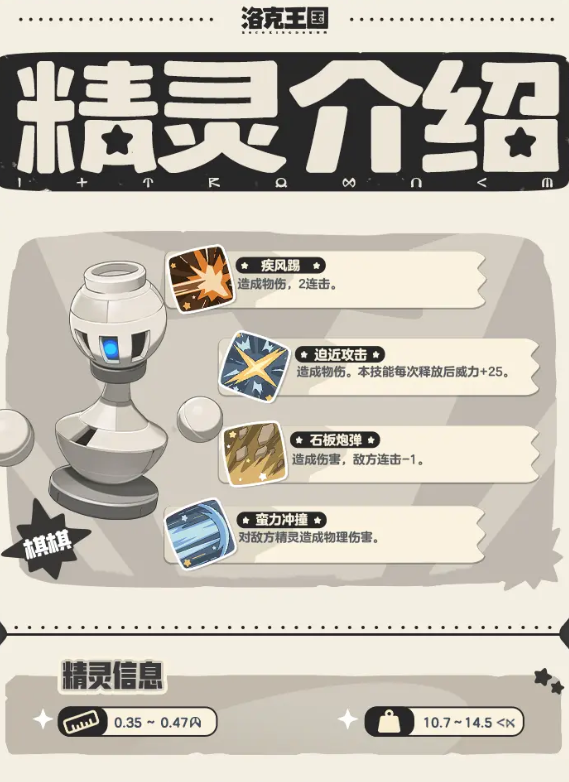 棋棋在游戏当中是一个非常特殊的精灵,由于它的灵感来源是国际象棋,忽然在进化和升级的模式方面,也采用了国际象棋的强度优先级,为主要梯度,棋棋的终极形态就是棋绮后,也就是国际象棋中战斗能力最强的一个棋子~
