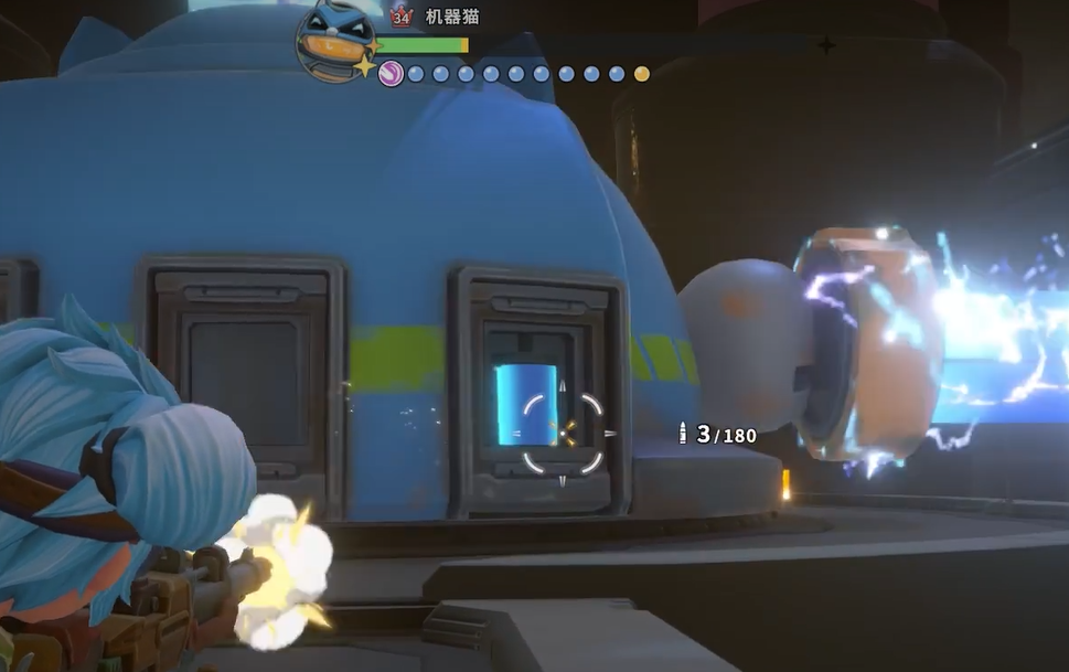 尽管机器猫表面等级仅为17级,但常规攻击对其几乎无效,普通输出常仅造成1点或2点伤害。原因在于其全身被能量力场覆盖,常规正面打击无法穿透。真正的突破口位于战斗场地外围——三台标有字母A、B、C的控制终端,呈三角分布且自带高亮视觉提示,极易识别。整场战斗严格遵循“三阶段循环机制”:每个阶段必须先摧毁指定控制装置,随后迅速绕至Boss后方,击碎当前解锁的一块背板。三阶段完成后,核心完全暴露,方可进行有效输出。