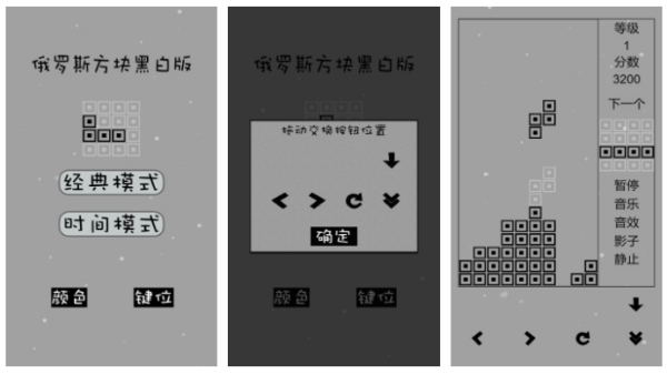 经典黑白配色,搭配像素画风,《经典俄罗斯方块黑白版》游戏为各位营造出了浓郁的怀旧氛围,令大家仿佛穿越时空一般,领略电子时代的娱乐特色。游戏依旧延续传统的规则设定,各位玩家将在此操纵不同形态的方块,旋转变换形态、移动,促使其掉落到各位制定的位置。当整行或者多行完美堆叠无空缺,即可完成此部分消除。