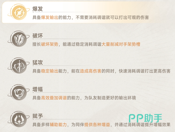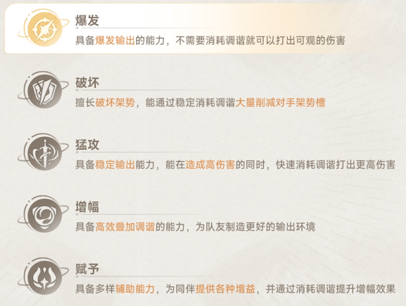 职业定位决定功能边界:爆发型角色以高倍率大招为核心输出,适合短时间压低Boss血线;猛攻型角色普攻与基础技能数值扎实,适合作为常驻站场主力;破坏型角色专精破韧与削防,可快速积累“白条”(韧性条),并配合破势类角色加速敌方防御崩溃。三者协同时,需确保队伍具备完整的“产印—叠印—耗印—增伤”闭环能力——即至少1名角色能稳定生成持续性元素印记,1名主C负责高效消耗印记触发超限伤害或真伤加成,剩余1位承担补位职能(如充能、回能、抗打断或生存保障)。