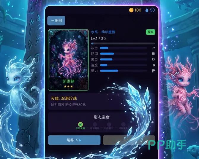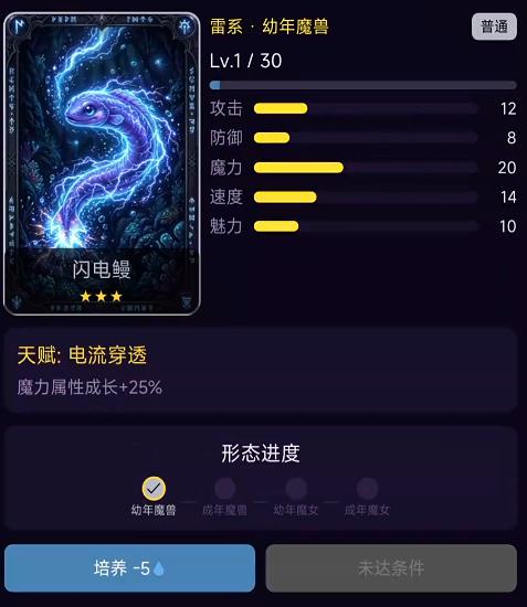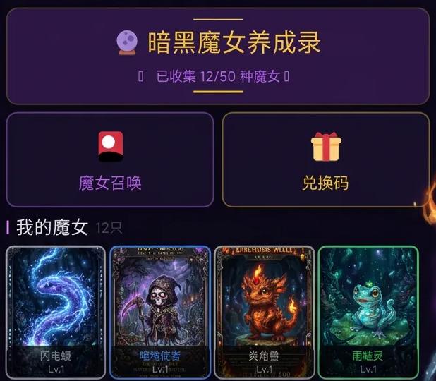 游戏内构建了覆盖光、暗、风、地、冰、雷、虚空七大基础属性的魔女图鉴体系,总计收录数十位差异化角色。每位魔女不仅拥有独立立绘与背景设定,更配备专属天赋树与技能组合。成长路径严格遵循“幼年魔兽→青年觉醒→成年魔女→巅峰重修”四阶演进模型,每阶段均触发外观、数值与能力维度的结构性跃迁。