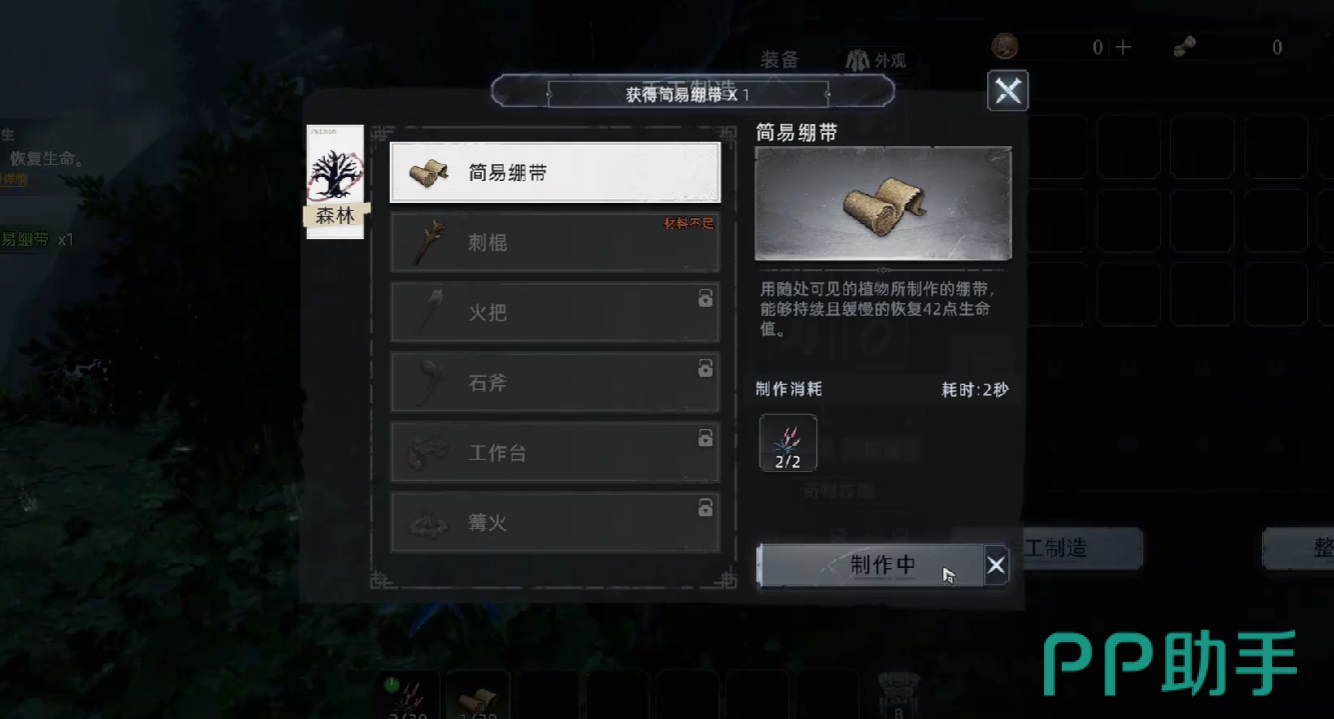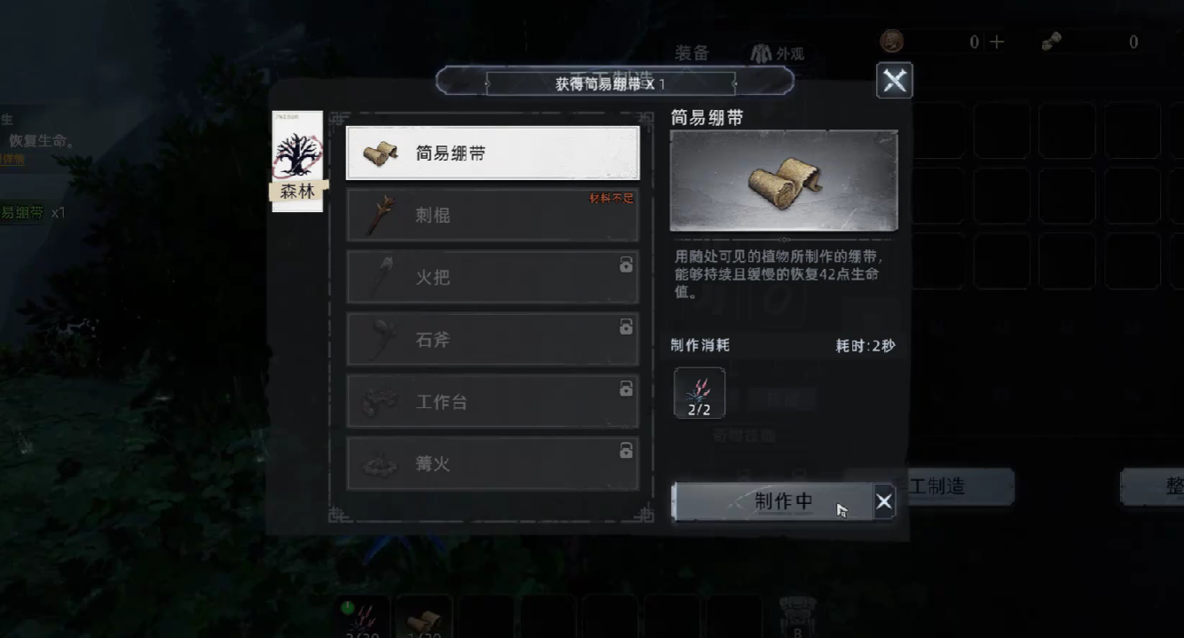 简易绷带只需要消耗玩家两份的草料,并且消耗的时间为两秒钟。