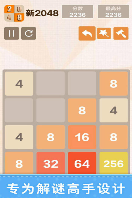 这款游戏中,两个相同的数字方块是可以合成的,还会成为一个更大的数字方块,而大家的最终目标就是要合成一个2048方块,这对于提升大家的细心、耐心和脑力是很好的磨砺机会。游戏还会准备好排行榜,就是要让大家直观看清自己的进步,并升起无限斗志去过关斩将,只为登榜扬名,收获荣耀感。