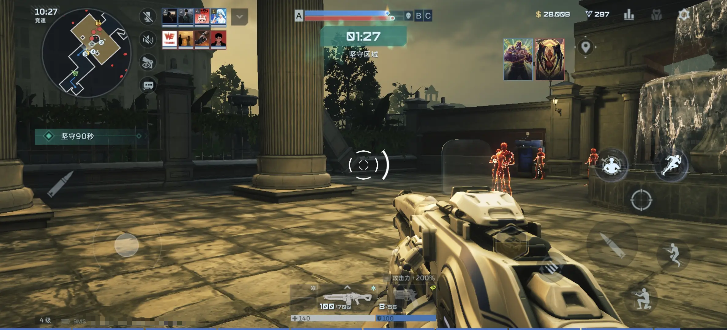 建议优先启用“移动轮盘”模式替代方向键,该模式能提供更精准的转向控制;同时将整体右侧操作区进行视觉扩容——将开火键与瞄准键统一移至屏幕右侧,并按功能权重差异化缩放:瞄准键建议设为最大尺寸以保障锁定稳定性,开火键略小于瞄准键但明显大于其他辅助按键,位置置于其正下方,形成垂直操作动线。