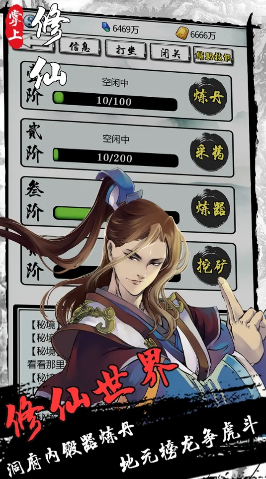 它是部文字形式的放置类游戏,能让人们很轻松地通过挂机就拿到大量的资源来进行角色的培养,同时还有着非常自由的养成内容,各位可在游戏内实现功法自由搭配,从众多修行路线中选择自己想要走的方向,还能带上灵兽、傀儡等为自己助战。此外,洞府、炼器等与修仙有关玩法它也一个没拉下,也是的玩家会获得很全面的修仙体验。