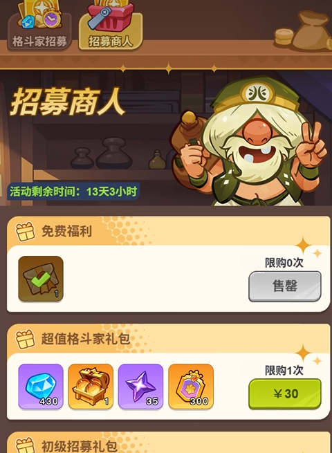 角色等级达60级后,解锁“格斗家每日礼包”,售价30元/日,内含自选英雄礼包。该礼包每日从限定池中随机出现可选角色,若匹配当前主力阵容所需核心战力(如已培养的前排或后排输出位),即可直接下单,无需犹豫。周活动礼包定位为高强度战力速升与榜单竞争工具,普通玩家仅作了解参考即可。