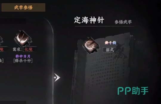 定海神针并非普通武学,其获取方式较为特殊,需先修习三项基础功法:霸王孤鸣枪、伏明棍法与望道天阙。这三项功法分别来自不同门派与剧情节点,只有全部掌握后,方可进入合成阶段。首先,霸王孤鸣枪的获取与主线任务紧密相关。玩家需推进剧情至协助义军对抗朝廷士兵的任务环节,在成功完成指定挑战后,即可获得该枪法秘籍,为后续合成打下基础。