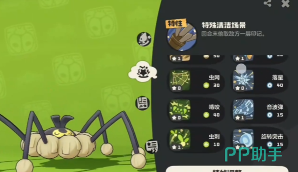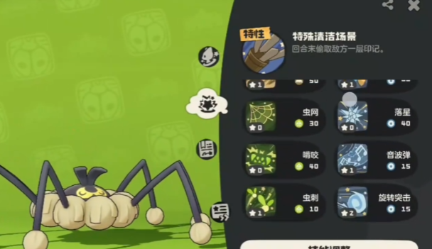 食尘短绒的地系与虫系双属性,在对战中面对不同属性敌人时具备多种应对手段,地系技能对电系、毒系、石系、火系等属性宠物有明显克制效果,虫系技能则对草系、恶魔系、武系宠物伤害加成显著,这种双属性组合,让食尘短绒在团队中可承担针对特定属性敌人的打击任务,食尘短绒具备在回合末偷取敌方一层印记的能力,印记通常是敌方通过技能获得的增益效果,如攻击提升、防御增强等,偷取印记不仅能削弱敌方,还可能为食尘短绒自身创造有利条件,打乱敌方节奏。