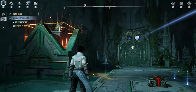 若背包中冰冻果已耗尽,无需等待自然刷新,可使用传送功能直达霜云镇,向NPC章全购买补给,即时恢复解谜进度。待冰面完全凝结后,踩踏左侧地面机关,使左侧光束准确投射至对面反射镜面;当左右两束光线同步校准并交汇于镜面中心时,石门将自动开启。切记:门开后暂勿进入,第二重谜题就隐藏在门后区域,贸然前行易错过关键交互点。