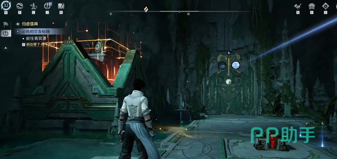 沧渊迷踪是《王者荣耀世界》中一处高沉浸感的地下解谜区域,位于沧海迷踪地下区域。入口处紧闭的石门即为首个机关关卡。解法逻辑清晰:先激活右侧地面机关,触发初始光束折射路径;关键在于确保两侧光线呈镜像对称状态——这是后续所有光学机关联动的基础条件。完成右侧操作后,立即移步至大门左侧的可升降石柱旁,将其调至最高档位;随后从背包中取出冰冻果,精准投掷至前方河面,即可形成稳固冰面。