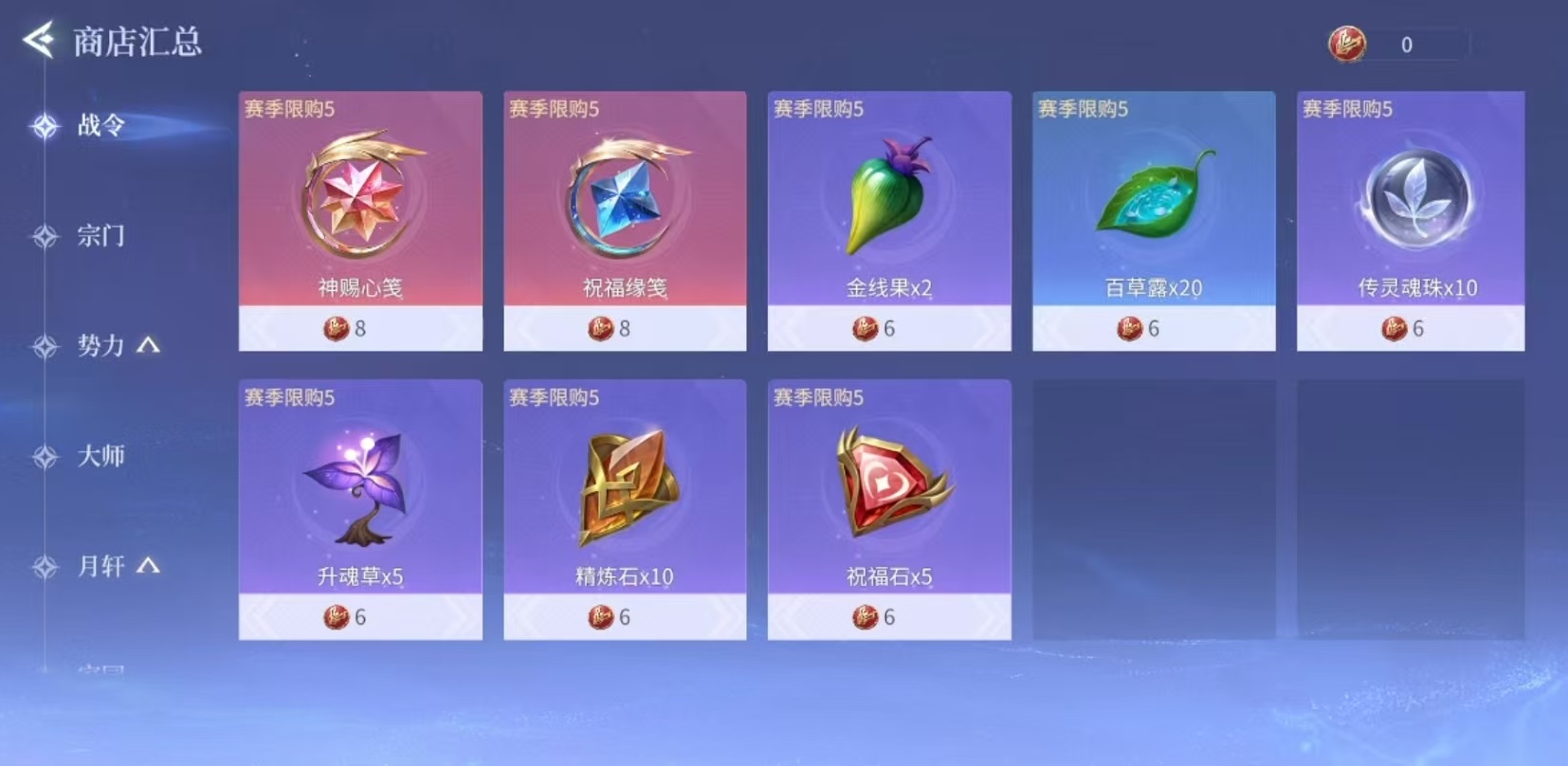 想要快速获取血脉资源,可通过游戏内的战令商店购买“金线果”。该道具每个赛季限购5组,共计10个。每个金线果使用后可直接为血脉注入500魂力,是提升血脉等级的重要材料。建议玩家在赛季更新后及时购入,避免错过限量机会。