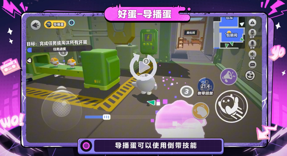 好蛋阵营新增「导播蛋」,搭载「倒带」技能。启用后可调取指定时间段内全体玩家的行动残影回放。系统将自动高亮曾接近倒地玩家的残影路径,辅助识别潜在接触者。该能力突破实时监控限制,赋予好蛋阵营事后追溯能力,在缺乏目击证言或现场混乱场景下,成为补强证据链的关键工具。
