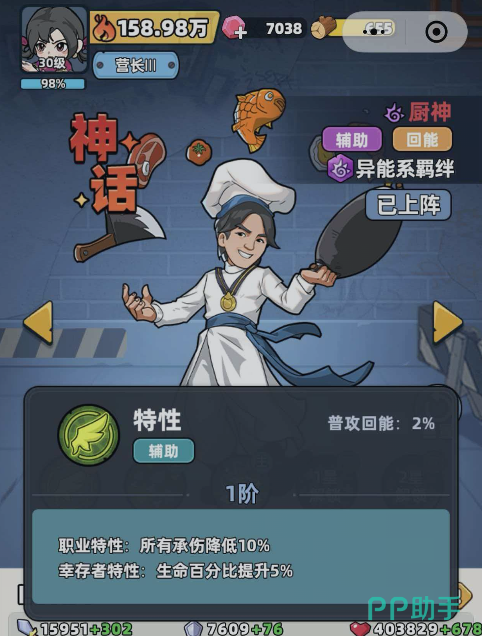 在《生存33天》这款策略生存类手游中,厨神作为神话品质的辅助型英雄,凭借出色的团队适配性与低门槛操作逻辑,成为新手开荒与高难副本攻坚阶段的热门选择。本文将系统解析厨神的核心机制、技能协同逻辑及实战应用要点,帮助玩家更高效地发挥其战略价值。