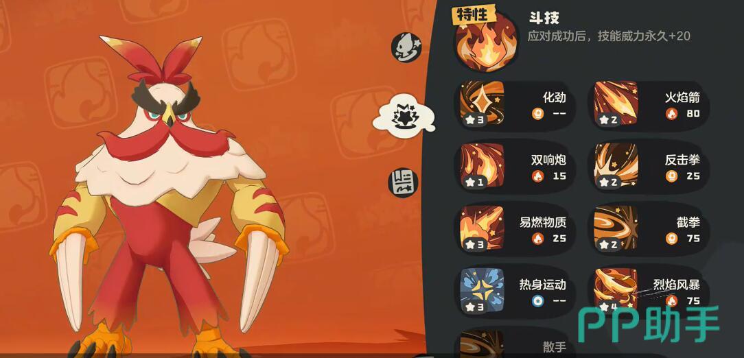 武者鸡定位为物理爆发型输出,核心技能炎爆拳(火系物攻,威力85)与折翼拳(武系物攻,威力95)形成双属性打击链。推荐配招:炎爆拳+折翼拳+强健体魄(提升攻防)+火焰冲锋(先手突进)。战斗中优先使用强健体魄叠加增益,利用属性克制快速清场,残血目标用折翼拳终结。BOSS中可替换火焰冲锋为烈焰护盾,提升生存能力。性格推荐+物攻-魔攻或+速度-魔攻,前者强化输出上限,后者提升先手优势。