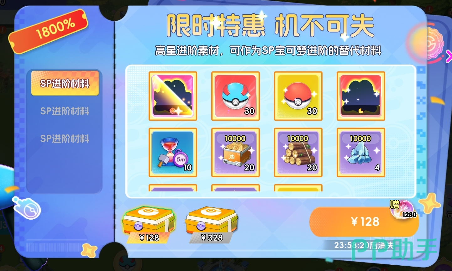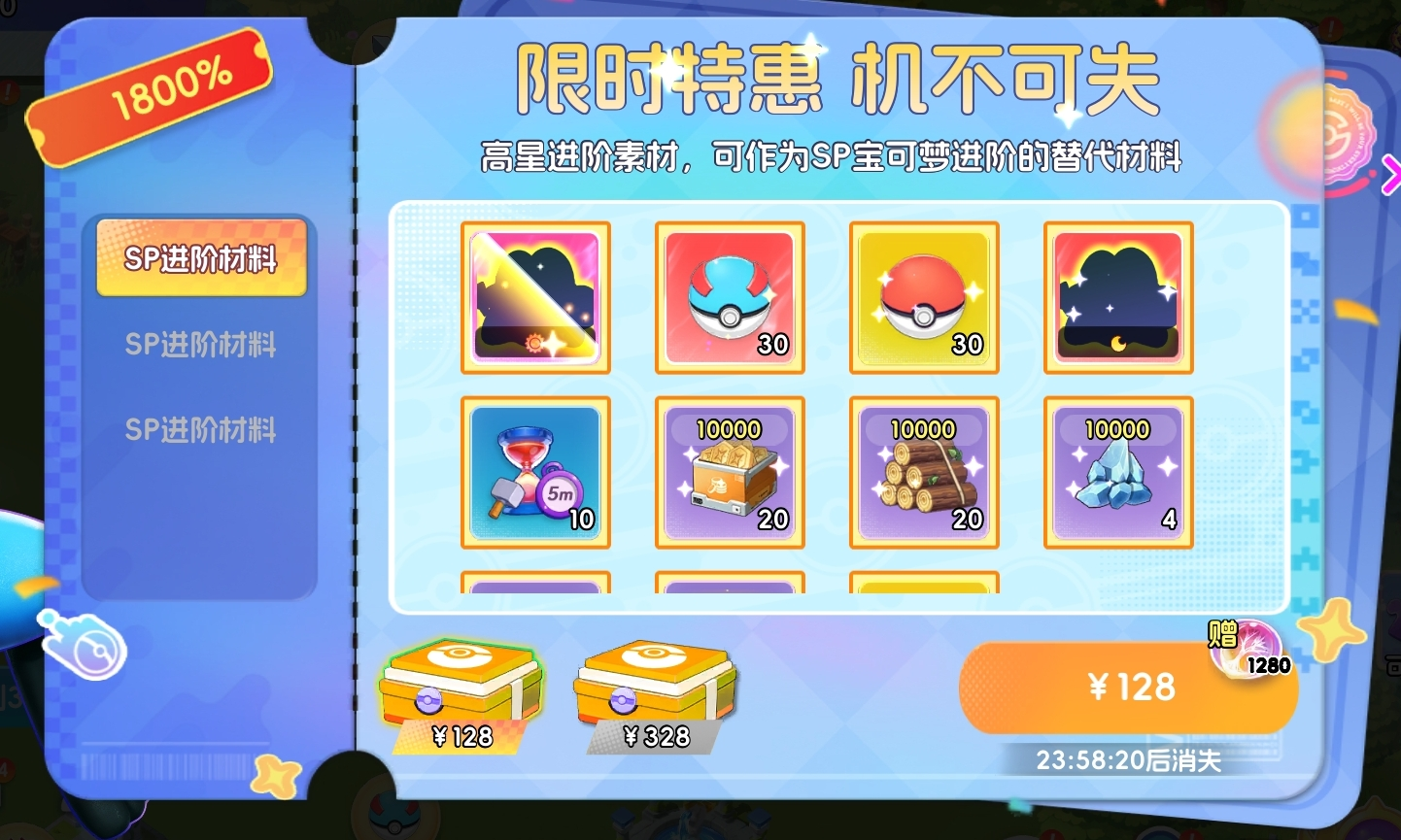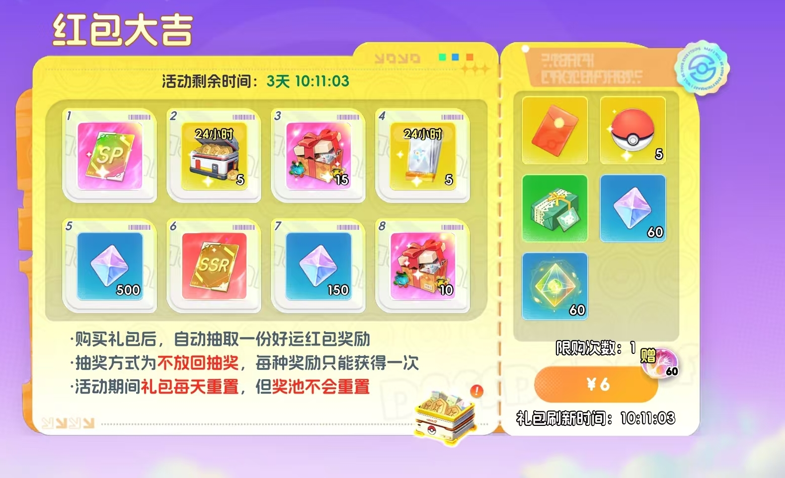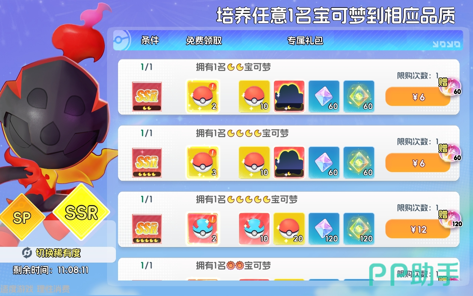 在宝可梦养成、副本挑战、活动参与等过程中随机触发,每份礼包均有独立倒计时,过期自动下架。因SP宝可梦相关礼包具备不可替代性,其优先级高于其余所有限时礼包。