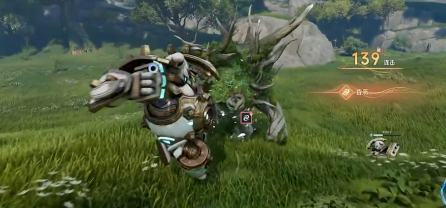 一技能释放时,鲁班5号自空中垂直下坠,对落点区域造成小范围AOE伤害,并赋予鲁班大师下一次普攻“激光冲击”效果,附带额外法术加成与穿透特性;二技能则实现中距离突进,落地后触发机械连打,同时开始积攒鲁班8号能量——该能量同样通过鲁班5号头顶的蓝色进度条直观呈现。当能量满格后,再次施放二技能将直接链接鲁班5号,将其投掷至目标位置,造成高额物理+法术混合伤害。