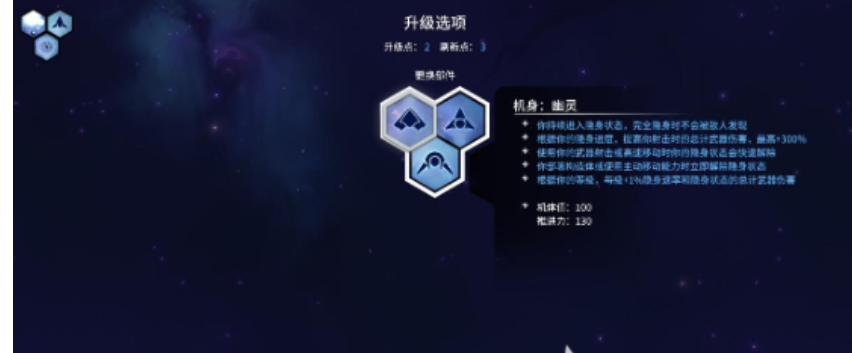 推荐机体为幽灵或母舰,二者均具备良好的隐蔽性与平台稳定性,适配导弹类武器的发射逻辑。武器锁定远距离制导导弹;护盾选用轨道护盾以增强持续作战容错率。构筑核心组件为巨星、超荷弹、分裂弹;增益模块优先装配追踪、制导、汇聚;射击类天赋按“快速射击→联机”顺序解锁。需特别注意:开火前务必确认自身处于隐形状态——可通过准心缩圈状态判断;冲刺动作会强制解除隐形,此时开火将暴露位置且失去先手优势。走位建议采用高频横向位移,规避敌方弹道的同时维持输出轴线。加点策略聚焦导弹基础伤害与航母炮台协同增益,前期加速体系成型,后期提升整体流派质变上限。