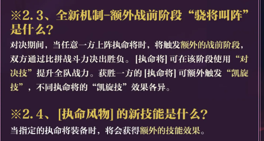 全新“骁将叫阵”机制将在对战中前置触发:只要任意一方上阵执命将,战斗开始前将自动进入该阶段。双方实时比拼基础战斗力数值,胜方获得“凯旋技”释放权。执命将在此阶段可施放“对决技”,为全队提供即时战力加成。每位执命将的凯旋技效果均具独特定位,涵盖输出增幅、生存强化或控制强化等方向。